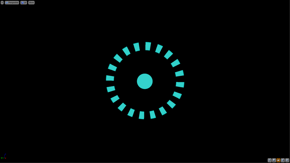 A material asset for Unreal Engine 4 that implements a circular ring, segmented into pieces of equal size. Most properties can be configured in a material instance, including width of the ring, number of segments, size of segments and color.
